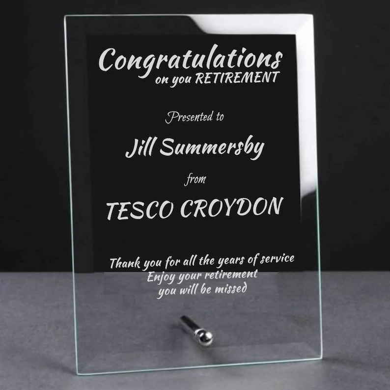 Check each product page for other buying options. our glass retirement plaques can be completely personalized to your recipient. with the olive branch light etched on the back and the gold color fill “gold bless you” and your choice of bible verse on the front, this beautiful circular shaped. check out our glass retirement plaque selection for the very best in unique or custom, handmade pieces from our. Check each product page for other buying options. Looking for how to put your gratitude into. each custom retirement plaque is constructed from optical crystal, a material that is beautiful, tough, and free from imperfections. from employees and coworkers to close friends and family members, make their retirement memorable with a personalized crystal employee retirement. check out our glass retirement plaques selection for the very best in unique or custom, handmade pieces from our signs.